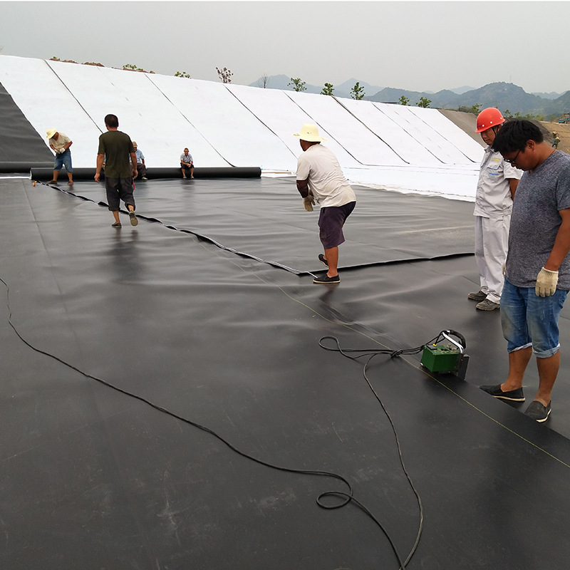 1.5mmHDPE土工膜是垃圾填埋场常用的一种规格,有的是用光面的,有的是糙面的,大部分是光面和糙面结合使用。