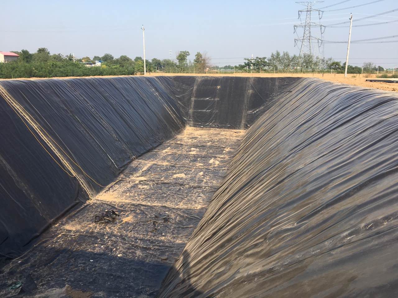 沼气池黑膜也叫防渗土工膜,这种材质相比较传统的水泥池和红泥沼气池,不但不受面积大小的影响,而且节约成本。养殖场沼气池防渗膜不仅能够起到良好的防渗效果还能够阻止污染地下水,保证沼气池周围居民的饮水安全。一般来说养殖场沼气池所用的防渗膜规格厚度为1.0—2.0mm,底膜一般用1.0或者1.5mm的,顶膜用1.5或者2.0mm的,而且防渗膜的原材料多采用全新料生产而成。