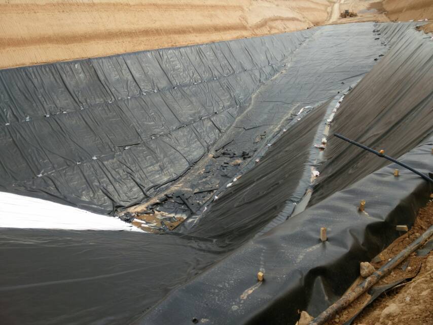 近几年来,生活垃圾填埋场符合环保要求需要铺设hdpe土工膜以满足要求,所以现在土工膜供不应求,垃圾填埋场一般采用单层防渗系统,膜材的选择也以2.0毫米光面土工膜和双糙面土工膜为主。为了避免HDPE膜出现悬空情况,采用早晚施工,但当中午气温升高时已铺设的HDPE膜会出现鼓包和褶皱情形,在坡脚区域纵向(平行于铺设方向)褶皱和场底横向(垂直于铺设方向)尤为明显,褶皱高度多达15~20厘米。