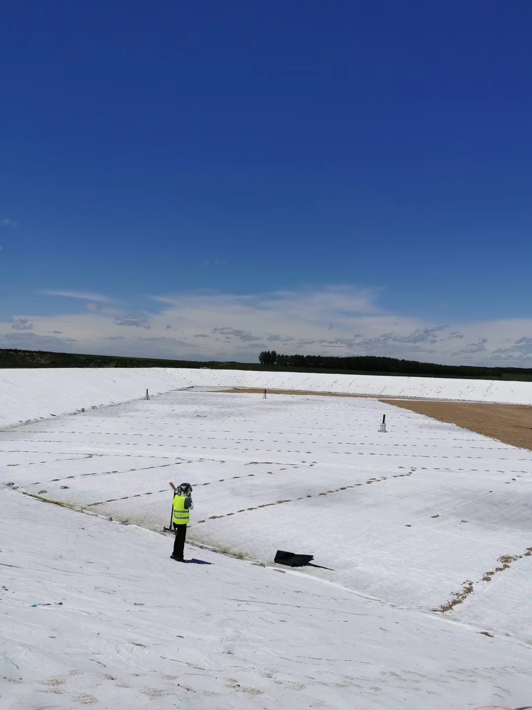 复合土工膜耐腐蚀,耐低温,抗冻性能好。其主要机理是以塑料薄膜的不透水性隔断土坝漏水通道,以其较大的抗拉强度和延伸率承受水压和适应坝体变形;而无纺布亦是一种高分子短纤维化学材料,通过针刺或热粘成形,具有较高的抗拉强度和延伸性,它与塑料薄膜结合后,不仅增大了塑料薄膜的抗拉强度和抗穿刺能力,而且由于无纺布表面粗糙,增大了接触面的摩擦系数,有利于复合土工膜及保护层的稳定。同时,它们对细菌和化学作用有较好的耐侵蚀性,不怕酸、碱、盐类的侵蚀。