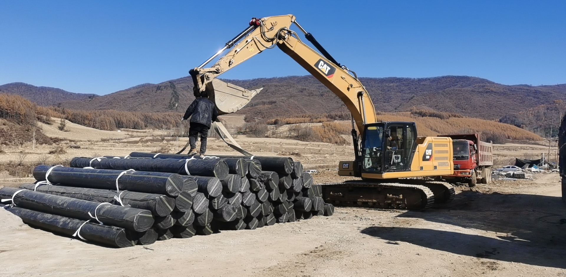 贵州安顺刘总的沼气池订购了8700平方米土工膜到货