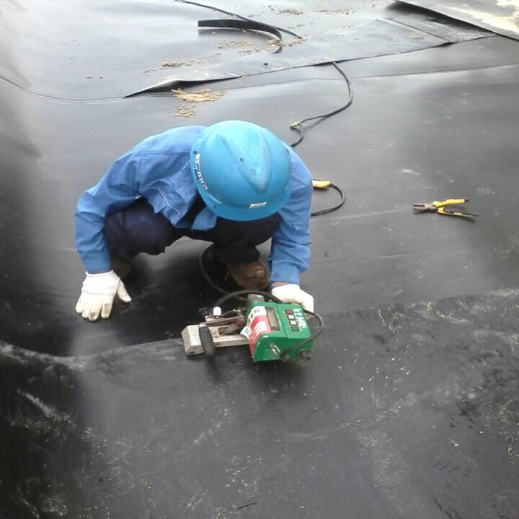 (1)HDPE防渗膜的焊接需要使用专业的焊接机,采用双轨热熔焊接。焊接机无法焊接的部位, 应采用挤出式热熔焊机,配以与原材料同质的焊条,形成堆焊的单焊缝。