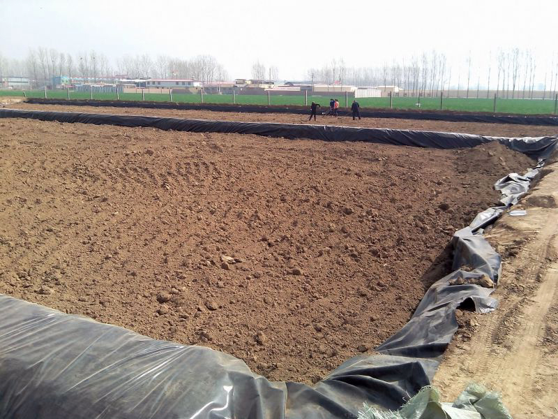 2、采用防渗膜进行防渗处理。防渗膜就是没有土工布进行防护,也称土工膜或光面土工膜。防渗膜施工方便,利于裁剪。常用的防渗膜规格一般为0.5mm。也有采用0.3mm、0.4mm。采用0.3mm、0.4mm防渗膜成本会降低不少。不同的厚度、原材料不一样价格也有所差别,再就是根据池子的面积大小,深度进行选择。
